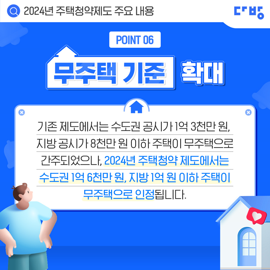 무주택 인정 기준이 상향되며, 수도권과 지방의 공시가 기준도 각각 1 6천만 원과 1억 원으로 확대되었습니다. 기존 무주택 기준에 맞지 않아 주택청약 제도의 혜택을 누리지 못했던 경우에도 청약 신청이 가능해졌습니다.