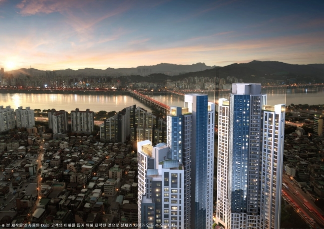 서울 강동구 성내동에 조성되는 '그란츠 리버파크'(투시도)가 오는 2월 분양할 예정이다. 디에이치프라퍼티원이 시행하고 DL이앤씨가 시공하는 이 단지는 강동구 천호역 주변에 고급 주상복합단지로 조성될 전망이다.